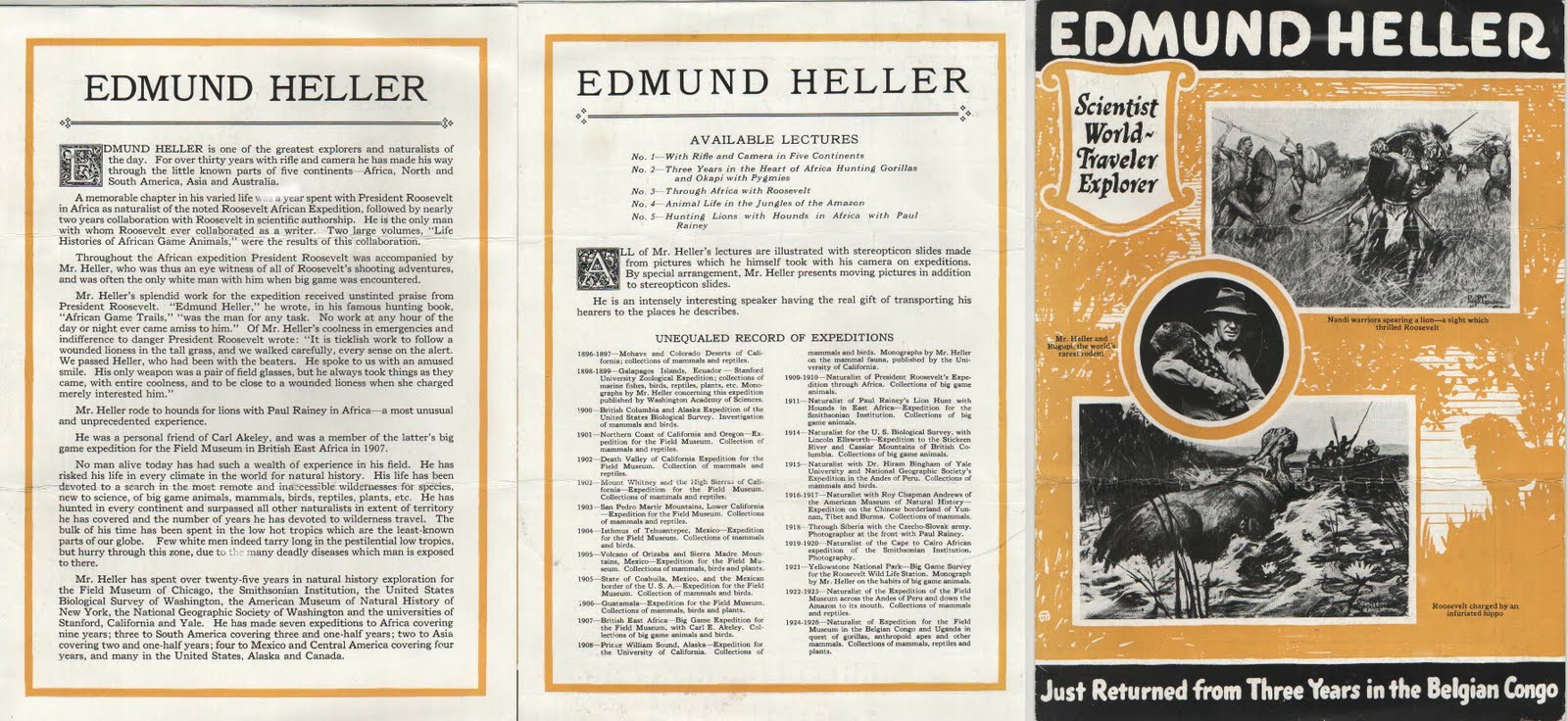 Heller spent the years 1909-1912 with the Smithsonian-Roosevelt and the Rainey African Expeditions.